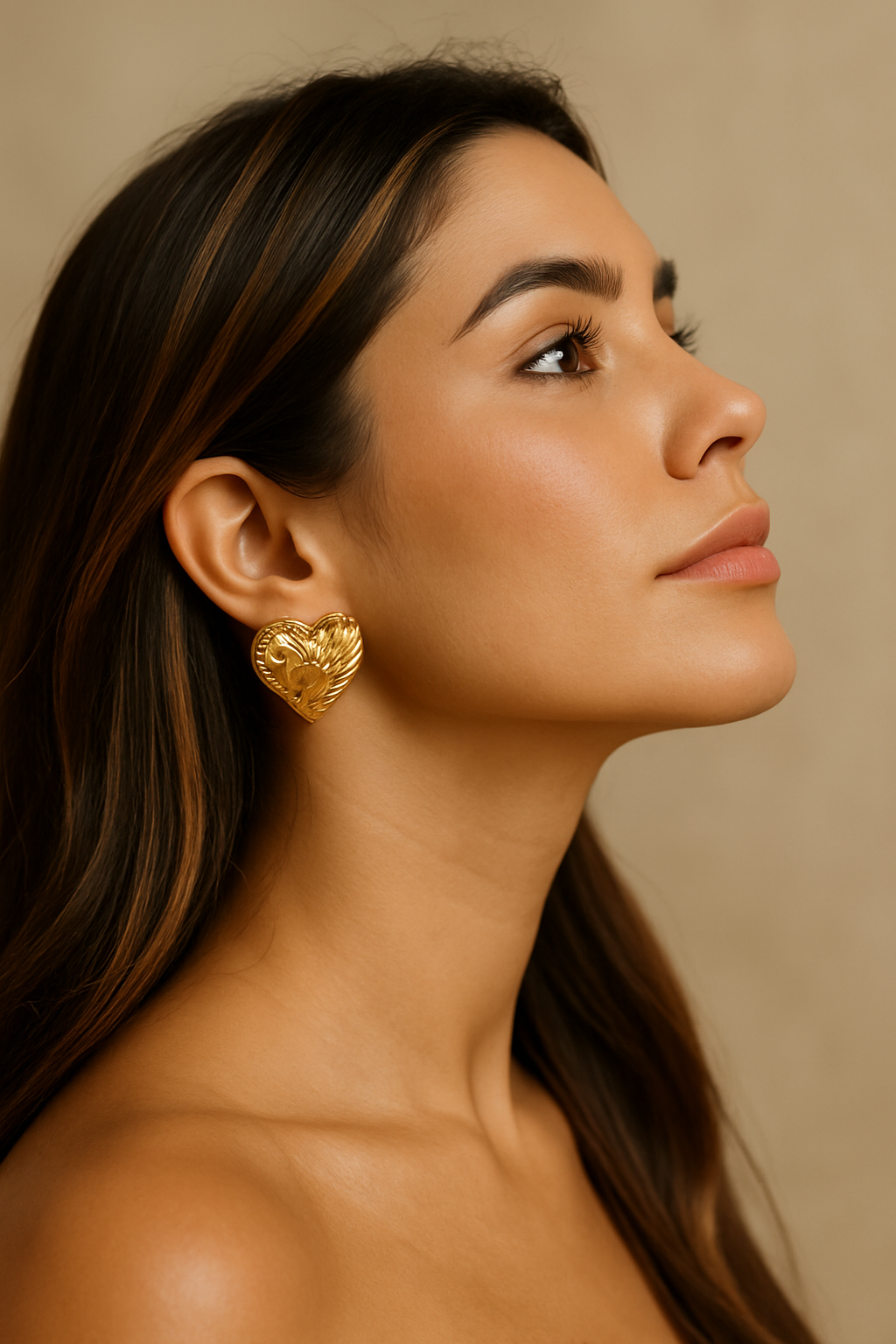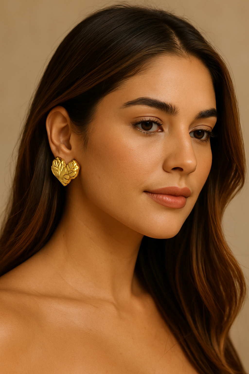 Una silueta de corazón en acabado dorado con textura orgánica y volumen sutil.