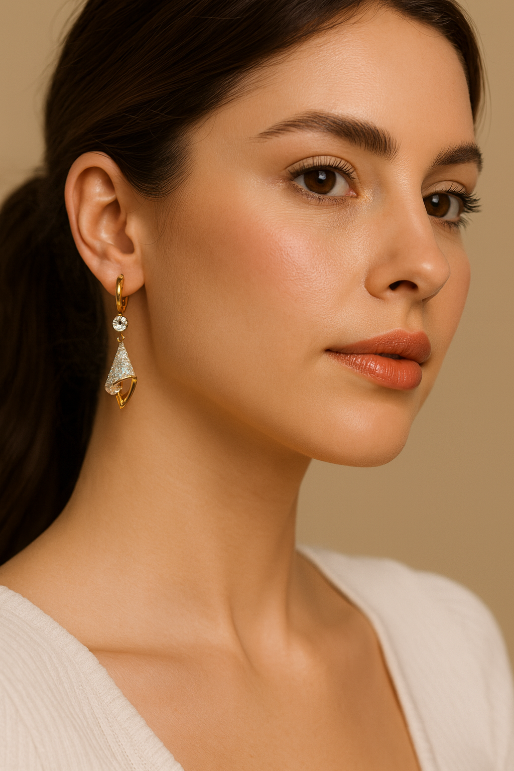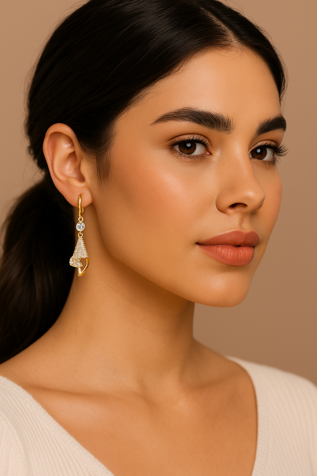 Aretes que redefinen el minimalismo con volumen, brillo y fuerza visual.